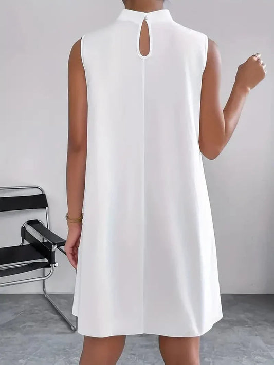 Women's Sleeveless A-line Dress - High Neck - Loose Fit - Elegant and Versatile
