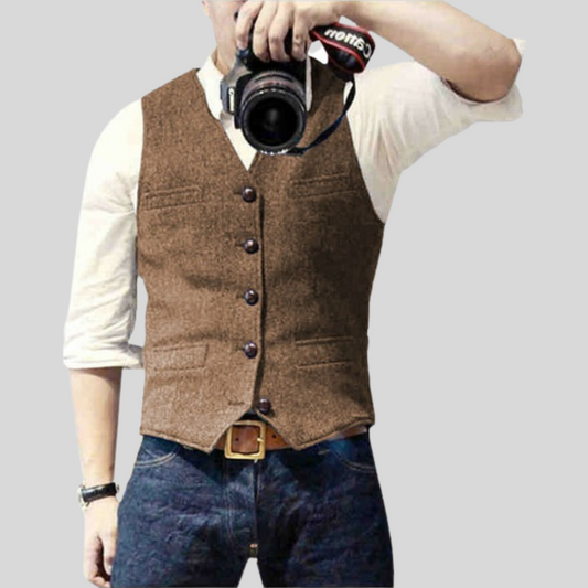 Men's Vest - Tailored Fit - Single-Breasted with Buttons - Textured Weave