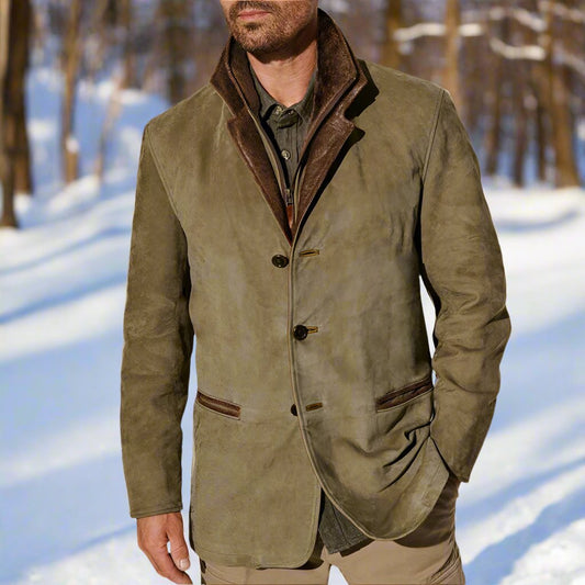 Men's Jacket - Elegant Suede Look with Leather Details - Tailored Fit - Single-Breasted Design