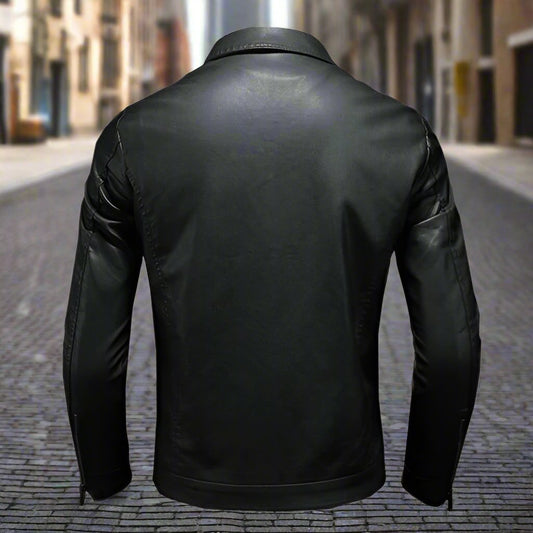 Men's Leather Jacket – Slim Fit – Classic Collar – Zipper Closure – Chest Pockets with Button