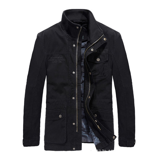 Men's Utility Jacket – Durable Cotton – Regular Fit – Stand Collar with Button – Multi-Pocket Design