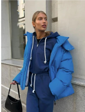 Women's Padded Puffer Jacket - Insulated and Water-Repellent - With Hood and Zipper