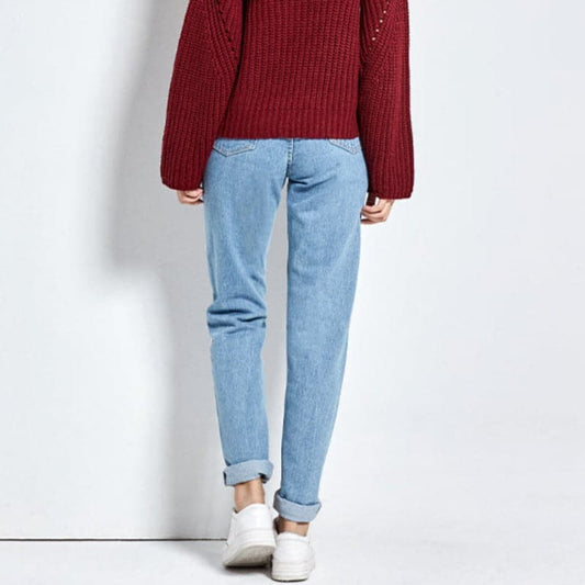 Women's Jeans - High-Waisted - Relaxed Fit - Rolled Edges - Comfortable Everyday Style