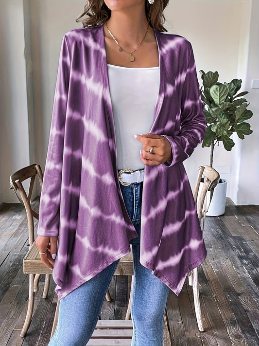 Women's Cardigan – Open Front – Long Sleeve – Tie-Dye Pattern – Casual Chic Layer