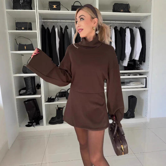 Women's Sweater – Oversized Fit – High Collar – Ribbed Knit Wool Look – Casual Style