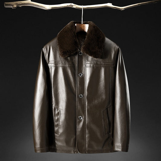 Men's Leather Jacket – Tailored Fit – Fur Collar – Button Closure – Waist Length
