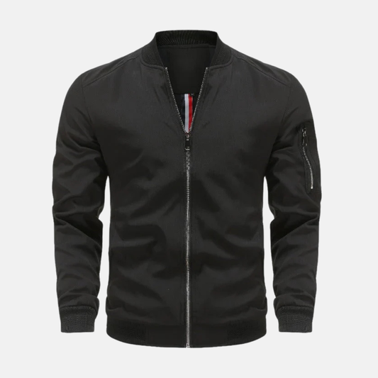 Men's Bomber Jacket – Regular Fit – Smooth Lightweight Material – Ribbed Edges – Sleeve Pocket with Zipper