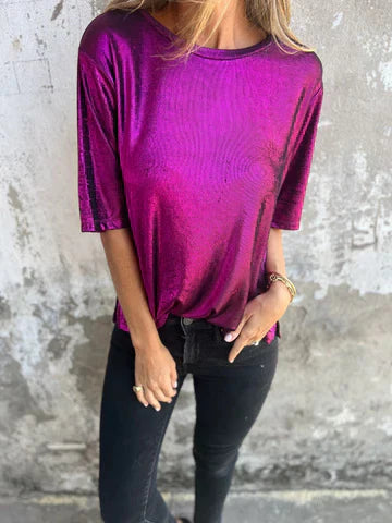 Women's Blouse – Relaxed Fit – Shiny Finish – Short Sleeve – Light and Breathable