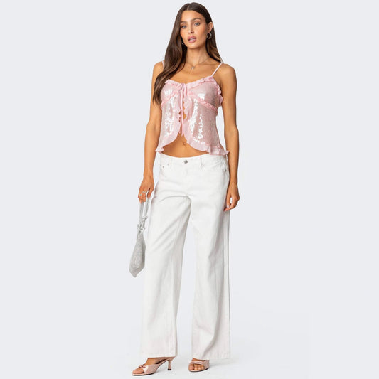 Women's Halter Crop Top – Sequins – Tight-fitting – Ruffle Edge – Tie String