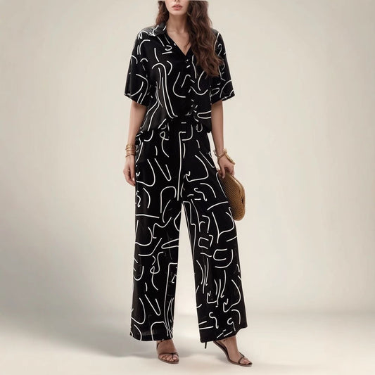 Women's Blouse – Oversize Fit – Breathable Cotton – Short Sleeve – Abstract Print