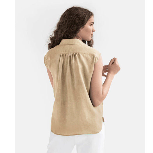Women's Sleeveless Blouse – Cotton Linen Blend – Relaxed Fit – Button Closure