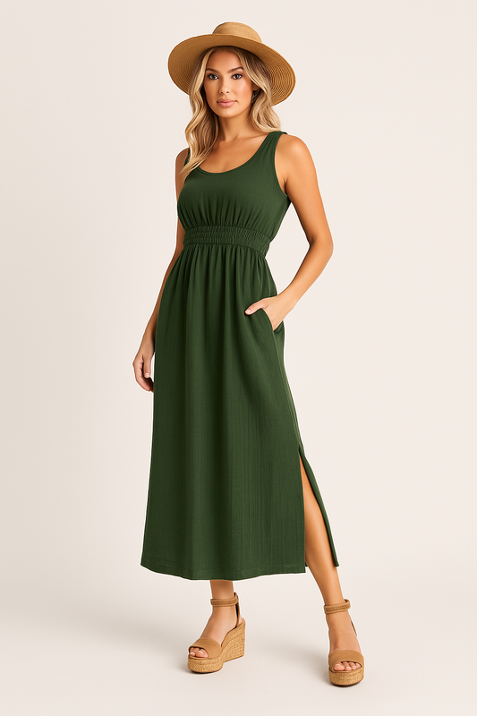 Women's A-line Dress – Sleeveless – Relaxed Fit – Lightweight and Breathable Fabric – Midi Length