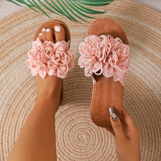 Women's Sandals - Flat Sole - Floral Detail - Comfort & Style for Everyday