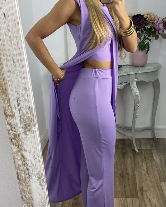 Women's Jumpsuit - Sleeveless with Layered Top - Wide Legs - Elegant and Comfortable