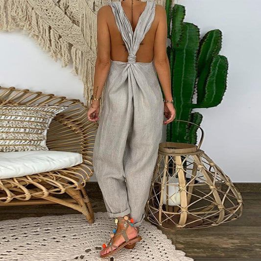 Women's Jumpsuit - Loose Fit - Lightweight and Breathable - Knot Detail at the Back