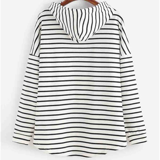 Women's Hoodie - Striped Pattern - Relaxed Fit - Soft Knit with Drawstring Hood
