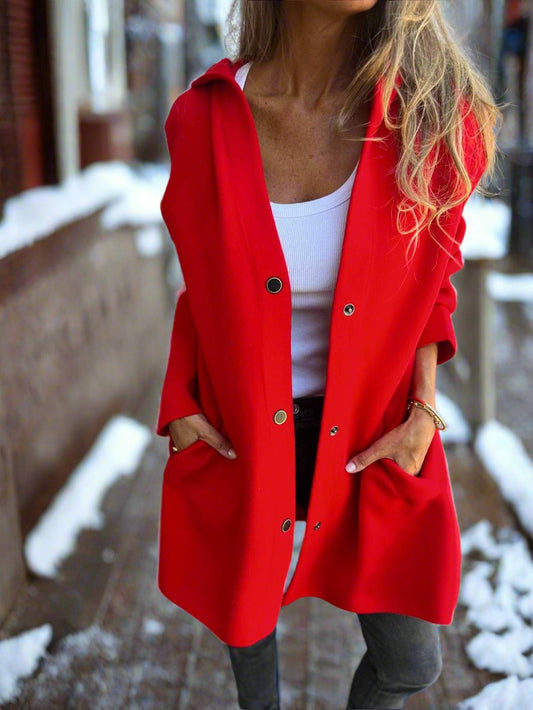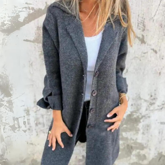 Women's Coat - Long Model - Classic Notch Collar - Button Closure - Elegant Details