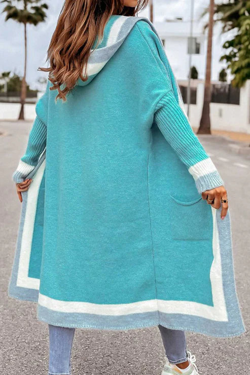 Women’s Knit Cardigan – Open Front – Long Relaxed Fit – Color-Striped Sleeves