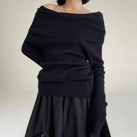 Women's Off-Shoulder Knit Sweater – Ribbed Knit – Tight-Fitting and Elegant Design
