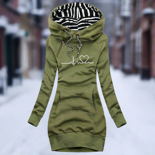 Women's Sweatshirt Dress - Long-Sleeved with Hood - Kangaroo Pocket - Casual Comfort