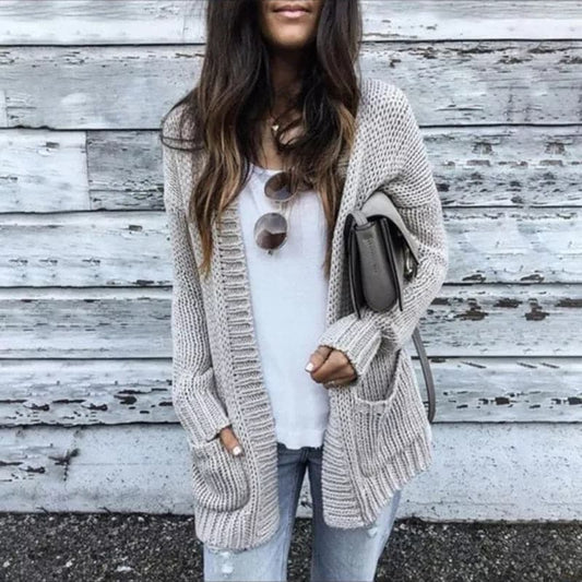 Women's Cardigan - Knit - Open Front - Relaxed Fit - With Pockets