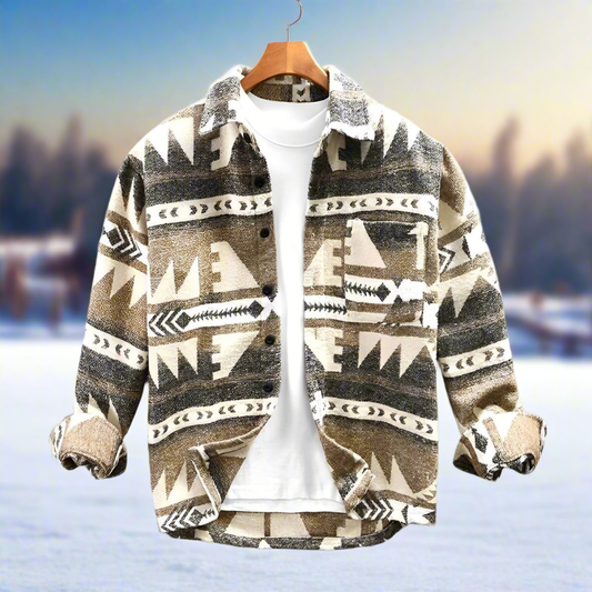 Men's Shirt Jacket - Button Closure - Soft and Durable - Aztec Pattern - Long Sleeves