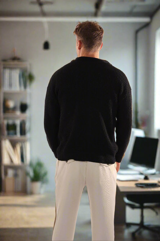 Men's Polo Sweater - Ribbed Knit - Long-Sleeved - Soft Knit - Comfortable Fit