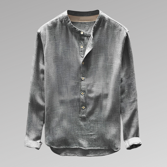 Men's Shirt - Lightweight Fabric - Relaxed Fit - Henley Collar - Long Sleeves