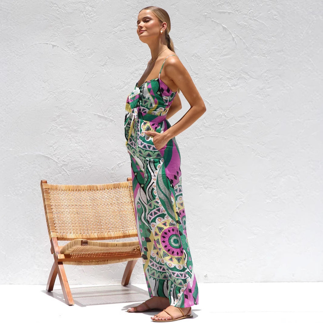Experience the ultimate style with Alma-Hansen's Women's Dress – Wide Leg with spaghetti straps and elegant front bow cutout. This breathable comfort dress is perfect for summer, parties, or everyday wear.