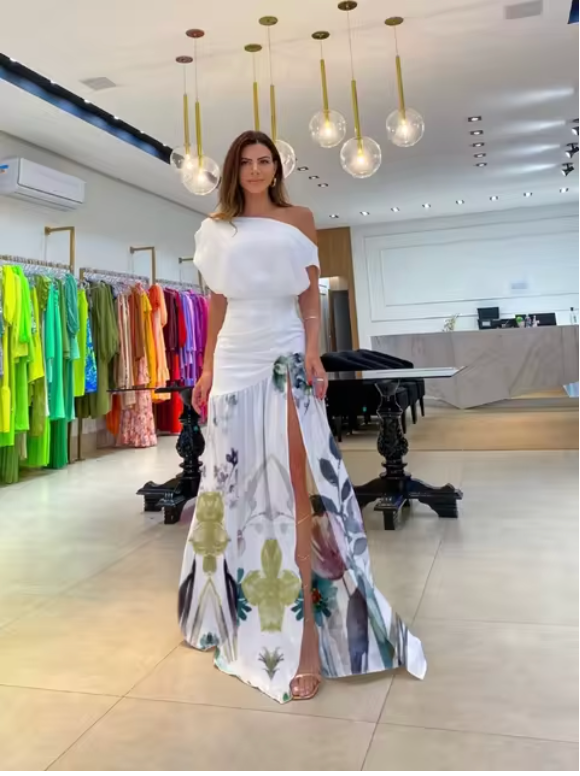 Experience ultimate elegance with this Alma Hansen Floral Halterneck Wrap Dress. A light and elegant dress with a beautiful floral print and an asymmetrical wrap design. Perfect for any occasion where you want to feel feminine and stylish.