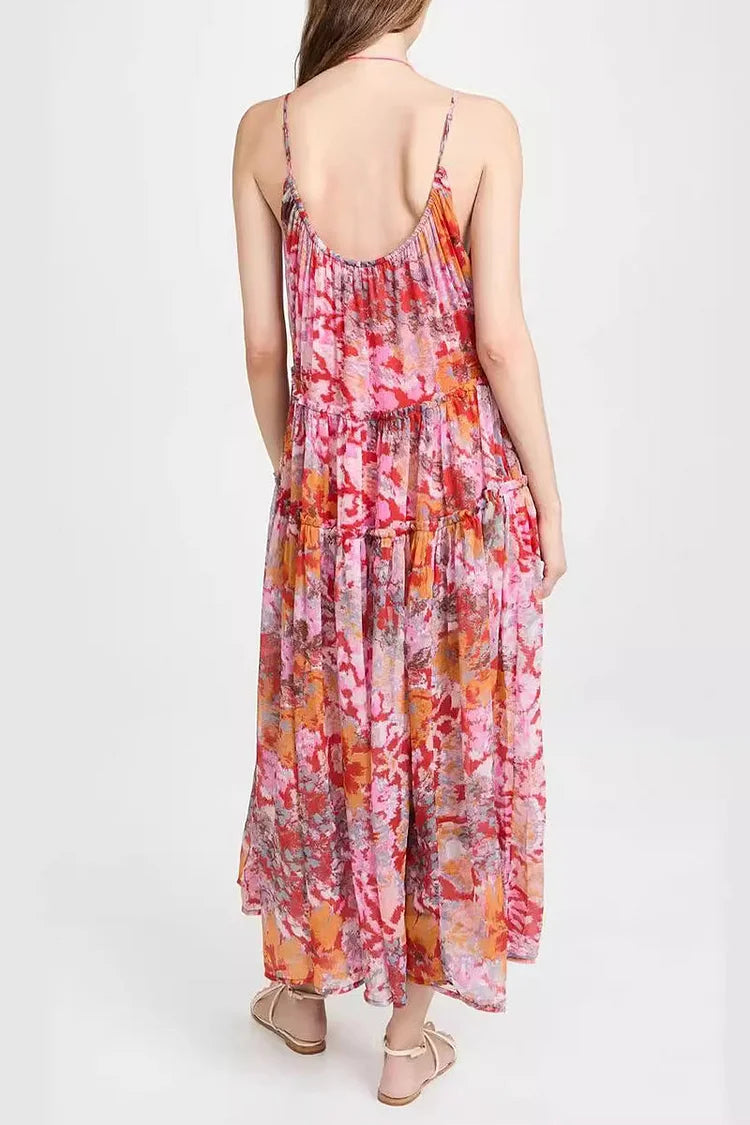 Dame Maxi Dress - Sleeveless Summer Dress with V-Neck. Experience ultimate comfort and style with this lightweight, sleeveless maxi dress from Alma Hansen. Perfect for summer days and festive occasions with a V-neck, spaghetti straps, and layered design.
