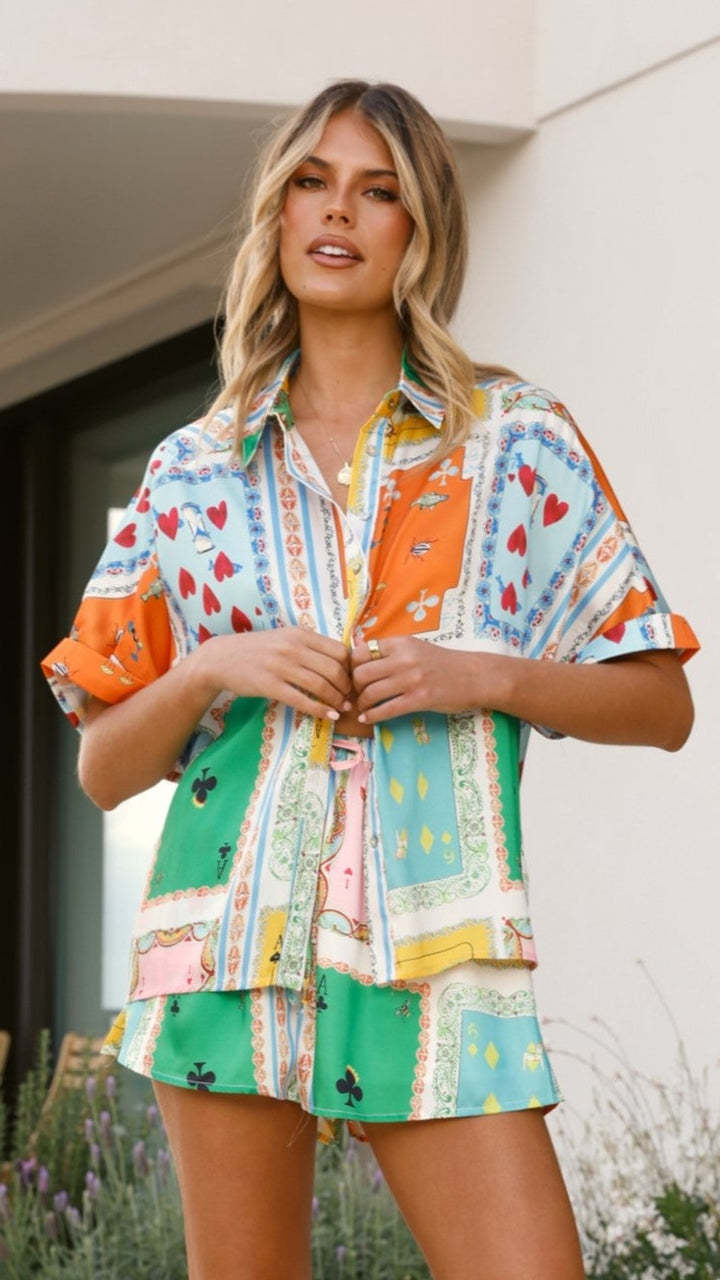 Women's Set with Shirt and Shorts – Relaxed Fit – Light Cotton – Button Closure from Alma-Hansen, the perfect set for casual days. This light cotton set with a relaxed fit and button closure offers both comfort and style. Ideal for summer days and casual occasions.
