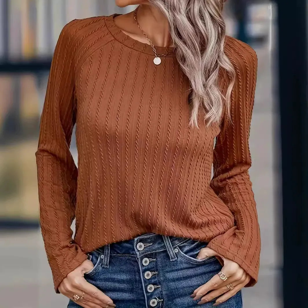 Discover the versatile Women's Long Sleeve T-shirt – Ribbed Knit – Relaxed Fit – Round Neck from Alma-Hansen. Perfect for comfortable everyday style, this ribbed knit T-shirt offers a comfortable, relaxed fit and a timeless design for any wardrobe.