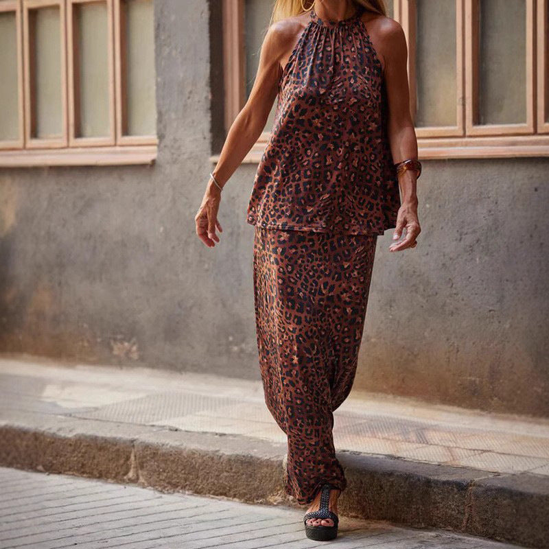 Design: Elegant two-piece set with halterneck top and long, airy skirt