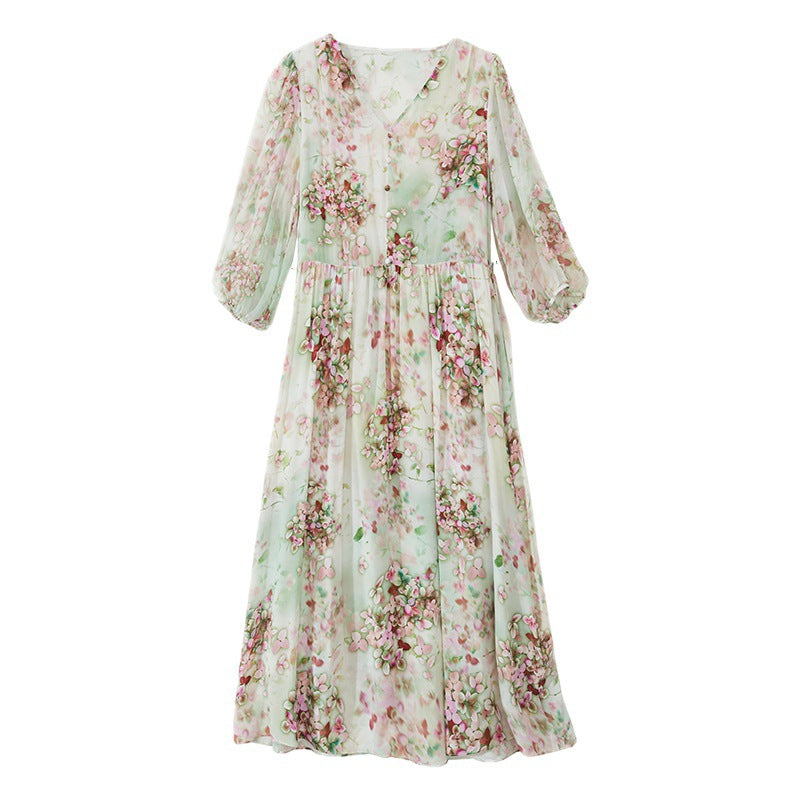 Discover the Eloraine Midi Dress with Floral Print and Elegant V-Neckline for a Soft, Refined Look!